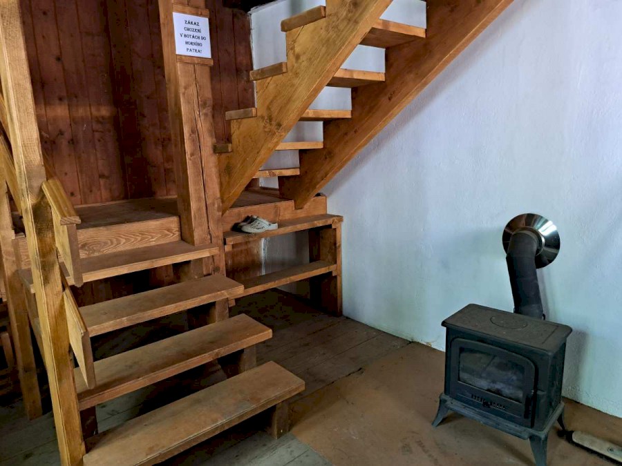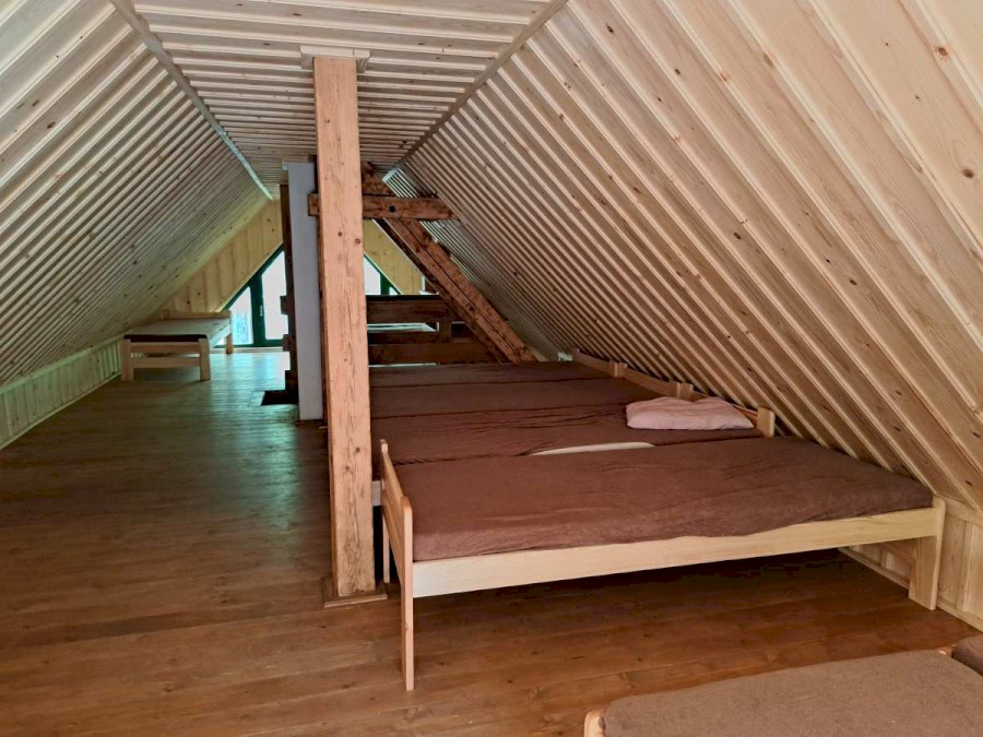 • Ložnice v podkroví – 11 postelí, v kuchyni 8 postelí (4 x dvoupatrová) – celkem tedy 19 míst na spaní. Ložní prádlo není z hygienických důvodů k dispozici.