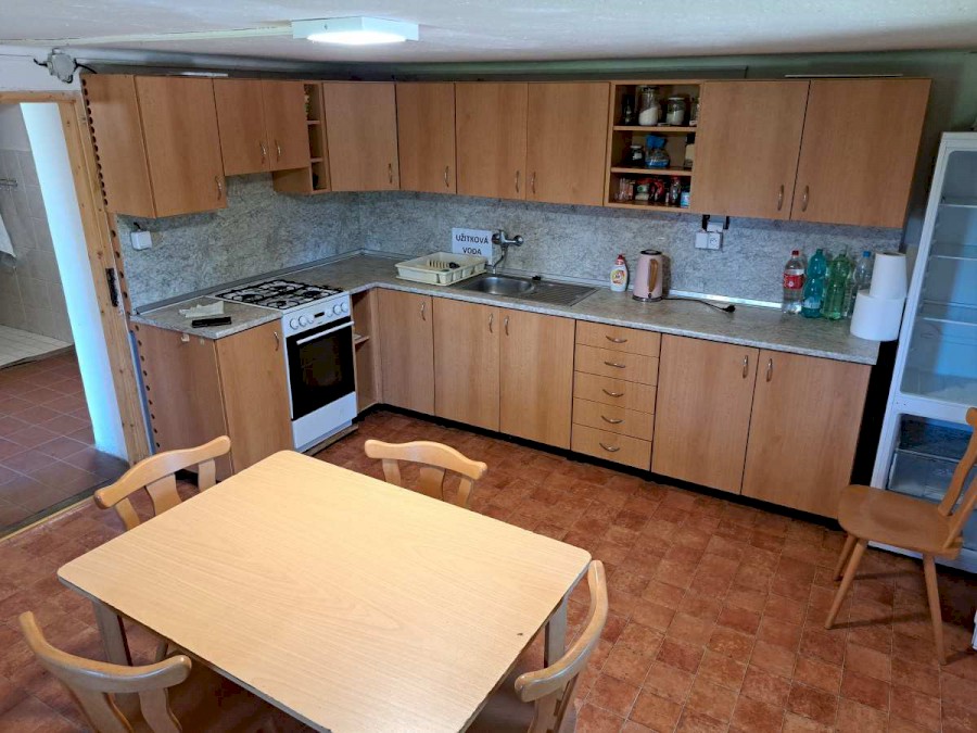 • Kuchyň s jídelnou, plynovým sporákem a základním nádobím