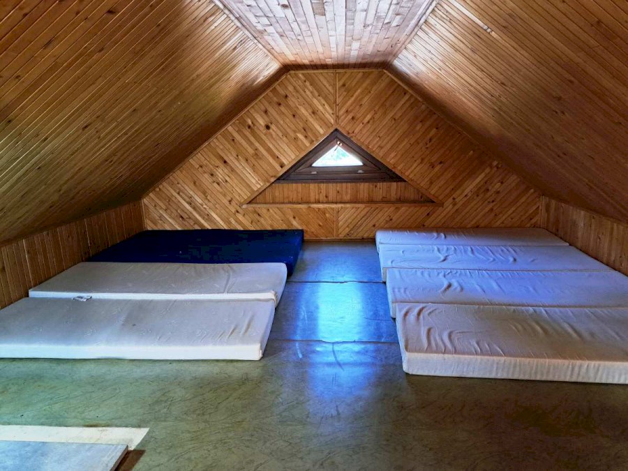• Podkroví: velký prostor pro přespání na zemi (nutno dovézt si vlastní karimatky nebo matrace)