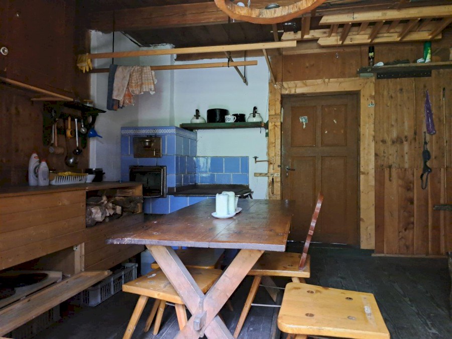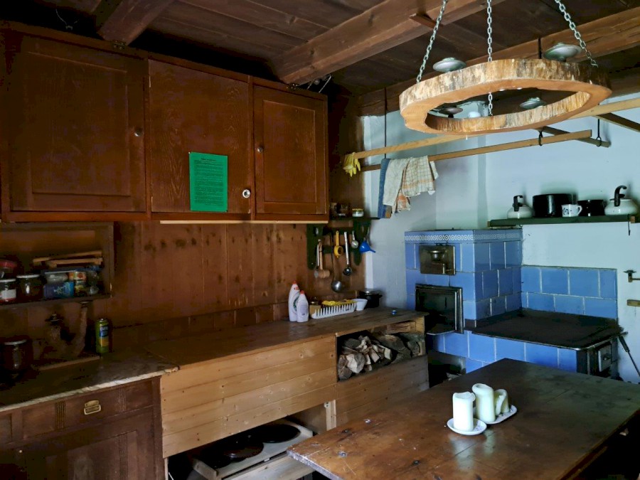 • V kuchyni je kachlový sporák s plotnou a troubou a základní vybavení (nádobí, hrnce, příbory). Je zde 1 poschoďová postel