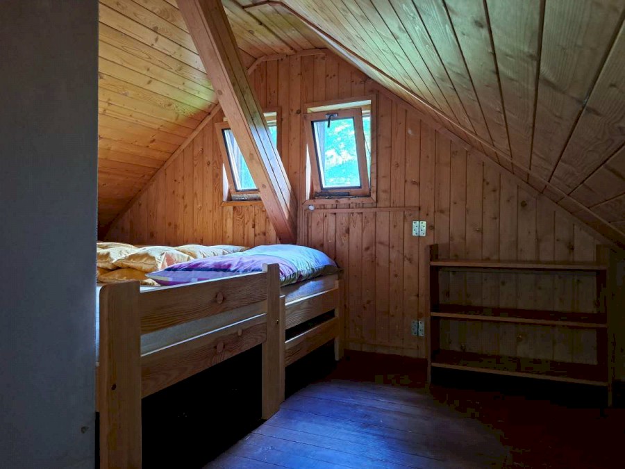 • Koupelna se sprchovým koutem a splachovací toaletou (užitková voda z potoka)