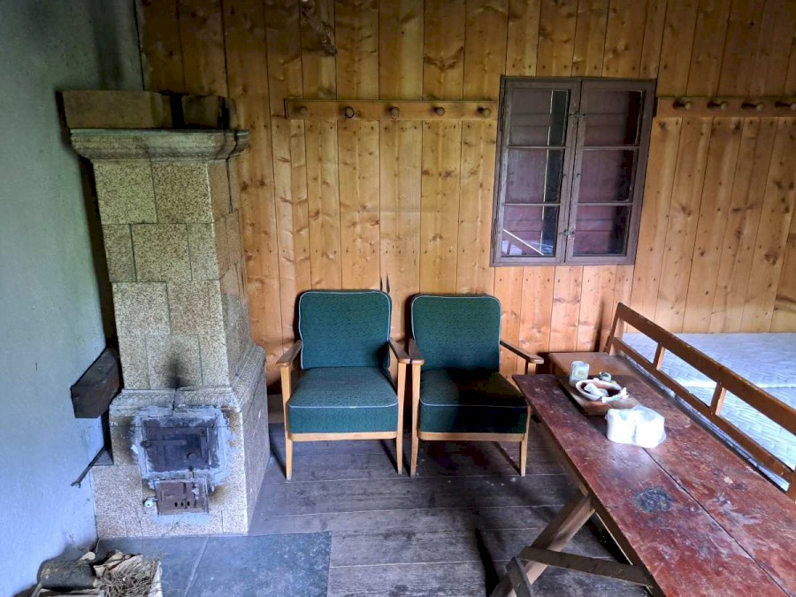 • V chatě jsou dvě místnosti - v obou kachlová kamna